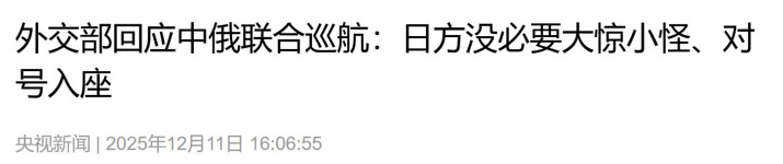 《酬酢部回复中俄勾搭巡航:日方没必要大惊小怪、对号入座》 2025年12月11日 开端:央视新闻
