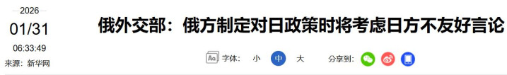 《俄酬酢部:俄方制定对日策略时将议论日方不友好言论》 2026/01/31 开端:新华网凤凰体育app官网入口