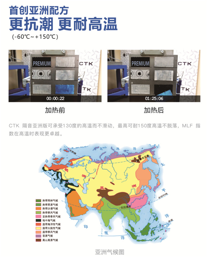 CTK深入洞悉到,汽车不同部位(如底盘、车门、轮拱、顶棚)产生的杂音频率各不疏通,用一种材料作念全车继续费钱没成果。为此,CTK打造了品类王人全的隔音矩阵,旗下止震板、隔绝垫、吸音棉均领有多种型号与特有配方,并针对新动力车型推出轻质化隔音材料。不同厚度与功能的组合,旨在为不同车型、不同杂音源提供专科的止震降噪决议,收场科学减重与高效隔音的均衡。