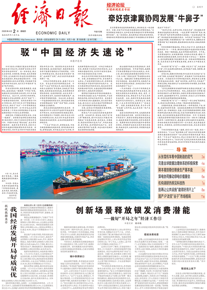 凤凰体育app官网入口 经济日报:驳“中国经济失速论”