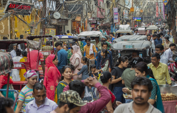 2023年4月26日,东谈主们集结在印度新德里的一处阛阓。新华社发(贾韦德·达尔摄)
