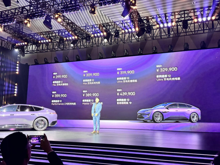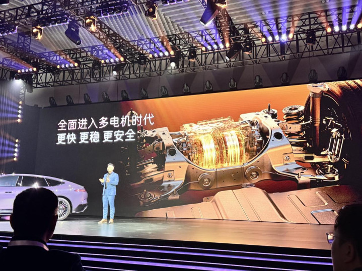 纯电版则提供双电机后驱和三电机四驱两种布局,其中后驱双电机总功率为502kW,三电机四驱版则在后轴双电机基础上加多一台210kW前电机,系统总功率达到712kW。
