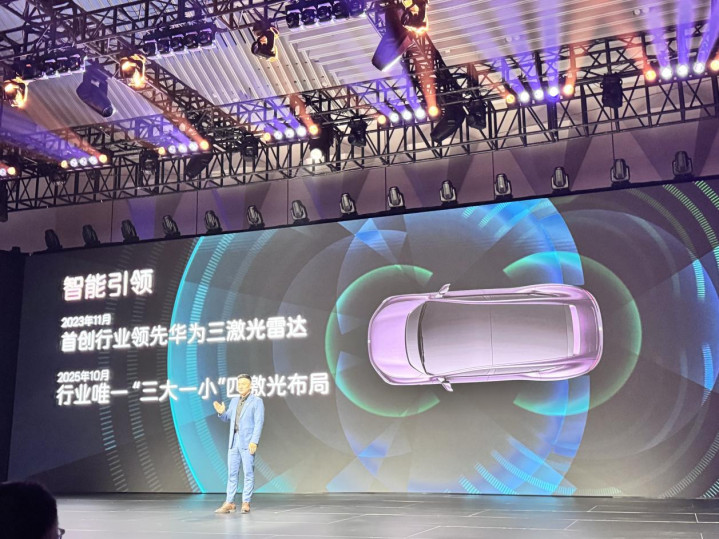 新车全系标配华为最新的896线激光雷达,同期搭配4D毫米波雷达和D-tof高精度固态激光雷达,全体感知智商又往前推了一步。