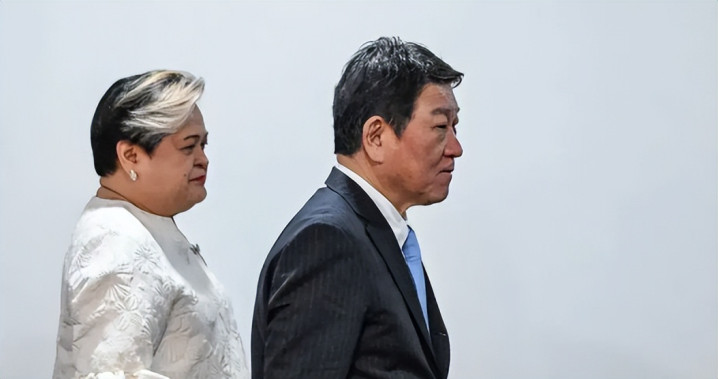 图|日本外务大臣茂木敏充(右)与菲律宾酬酢部长拉扎罗(左)