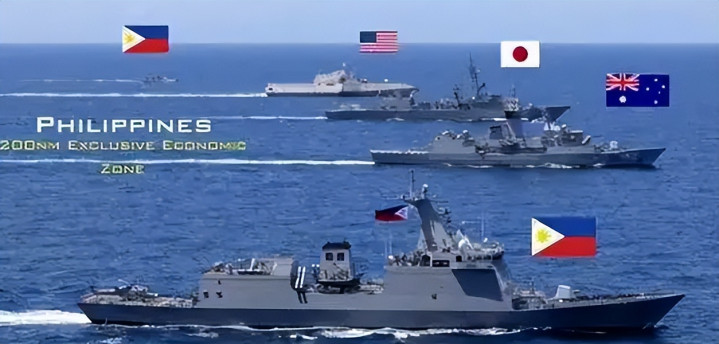 24号这天,日本、好意思国、菲律宾在吕宋岛北部和巴士海峡临近搞三边海上合作。