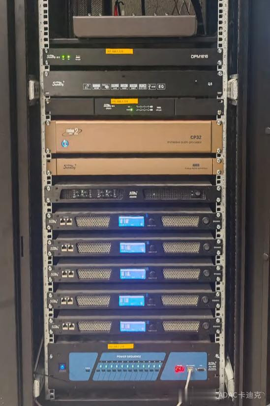 此外,系统还搭载了音王FCL05L两分频无源同轴音箱、FCL04D 4”无源两分频同轴音箱与FCL15SA有源超低频音箱,结束精确均匀的声场粉饰;互助DG4065 数字功率放大器(带DSP)与DPM1616带DANTE数字音频措置器,为系统提供充沛的启动智力与高超化音频管控,共同构建出一套完好意思且专科的千里浸声扩声系统。