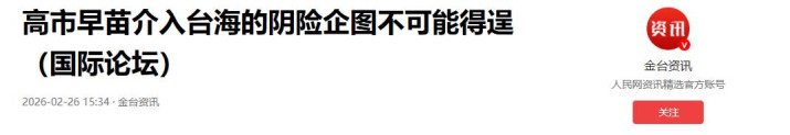 参考信息1:《高市早苗介入台海的奸狡企图不行能得逞(国外论坛)》金台资讯2026.02.06