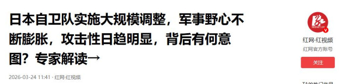 参考信息2:《日本自保队实施大范畴转念,军事贪念接续扩张,攻击性日趋彰着,背后有何意图?群众解读→》红网红视频