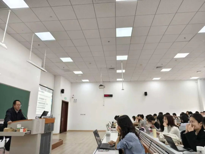 2025年,崔诚恳为翻译专科硕士接续生讲“AI翻译”课。(图/受访者供图)