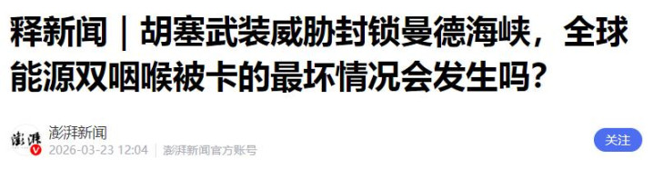 [1]释新闻|胡塞武装挟制紧闭曼德海峡,全球动力双咽喉被卡的最坏情况会发生吗? 彭湃新闻